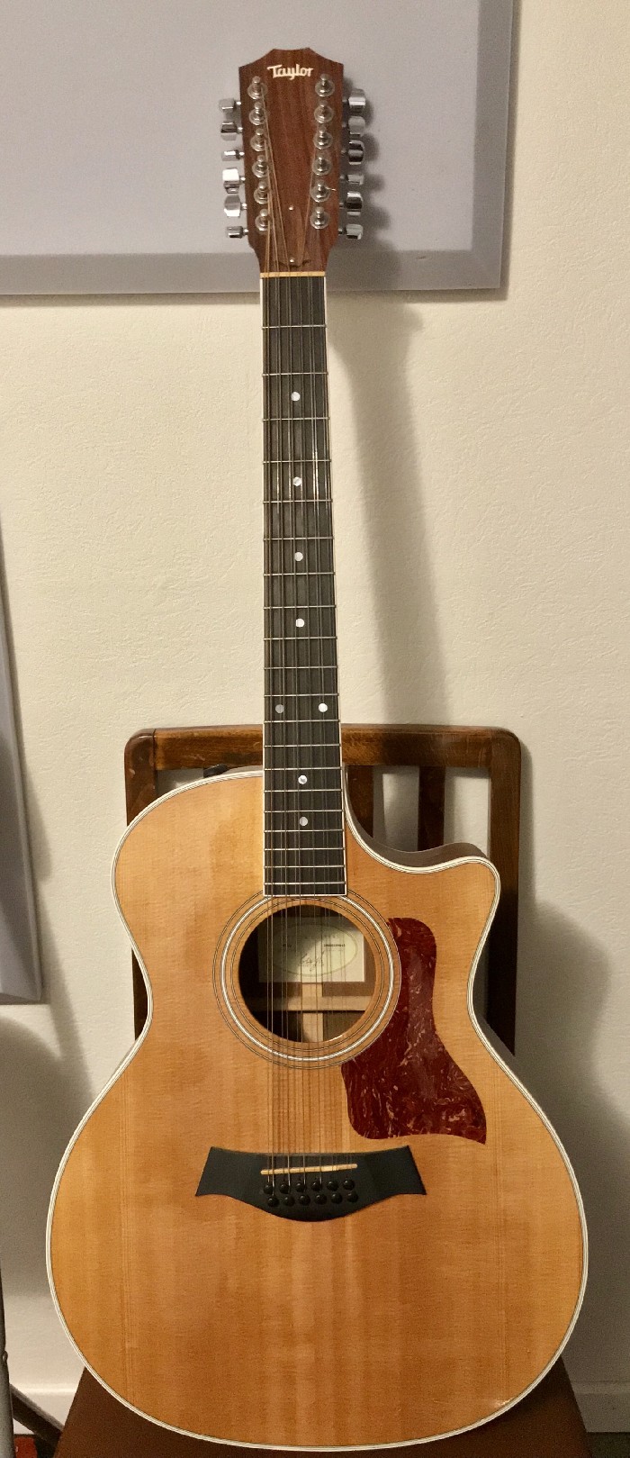 Vends guitare 12 cordes 454 CE haut de gamme en parfait état (comme neuve) dans son flycase officiel Taylor. Cordes neuves élixir (40€), valeur guitare neuve 2677€.