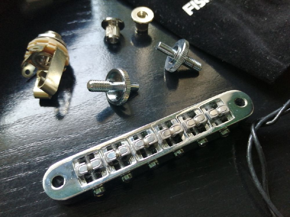 Fishman Powerbridge tune-o-matic de type Nashville avec micro piezo passif intégré.