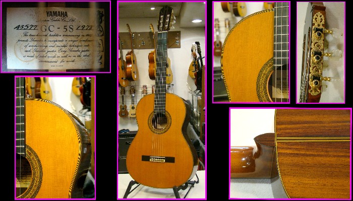 Guitare classique YAMAHA modèle "Grand Concert GC-5 S" table épicéa , fond & éclisses en palissandre Indien , touche ébène , construite en 1978 au Japon , bon état général , vendue avec étui rigide . Visible chez Musikentrock à Paris 75008
