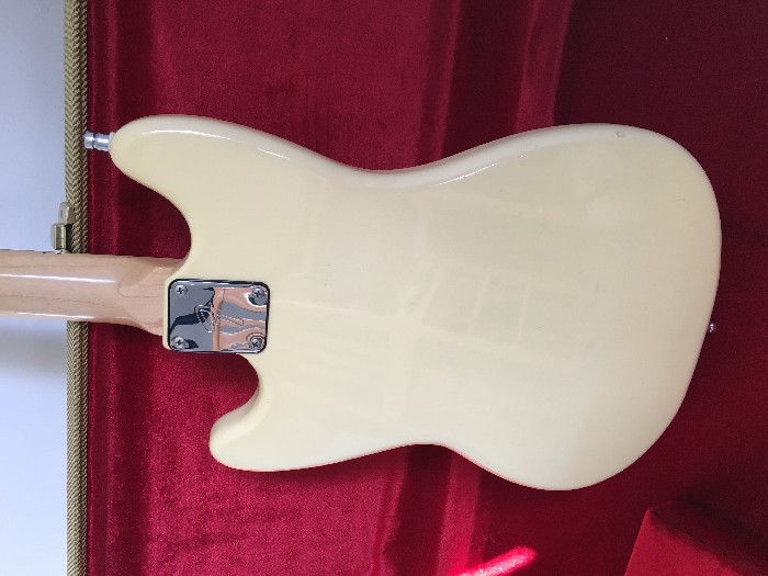 Pour cause d'un besoin d'argent, je vends malheureusement ma fender musicmaster usa de 77, elle est 100% d'origine, le fly case type fender vintage est vendu avec.