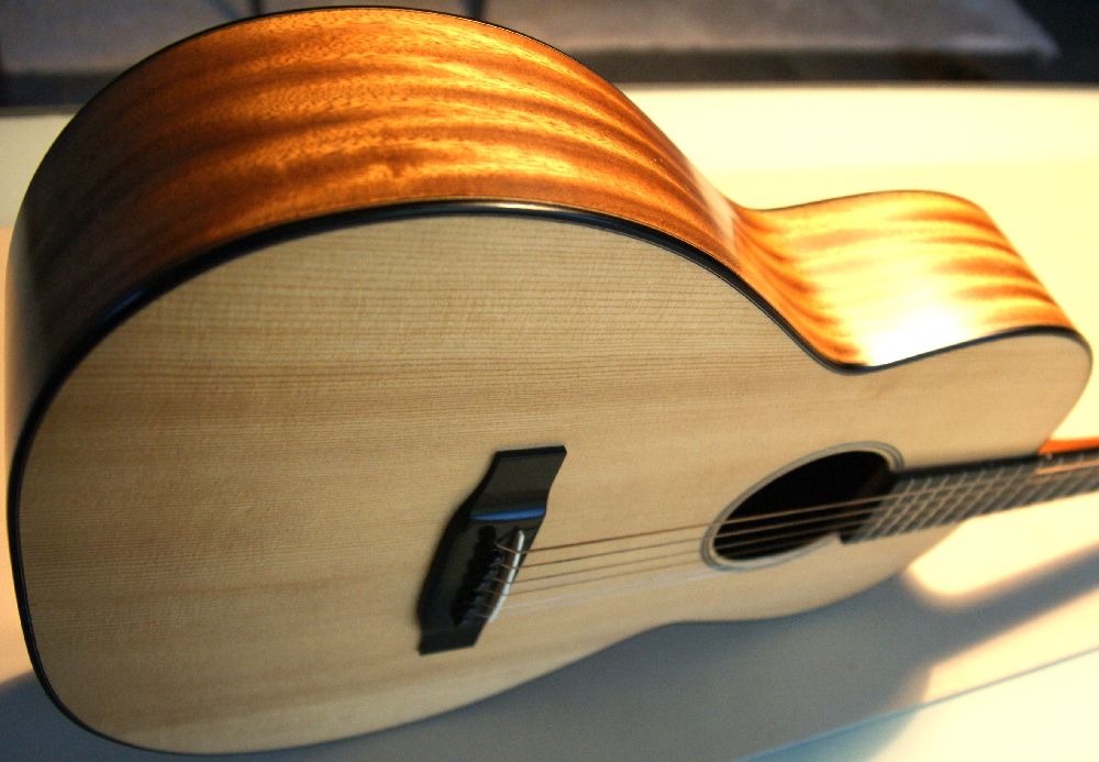 Vraiment une excellente guitare, à tel point que j'en avais commandé une autre presque aussi sec, toujours avec un épicéa allemand pour la table mais avec la caisse en noyer (pour un peu plus de brillance que le palissandre) et avec un renfort de manche en carbone pour plus de légèreté (1kg 500, exceptionnel pour une 00).