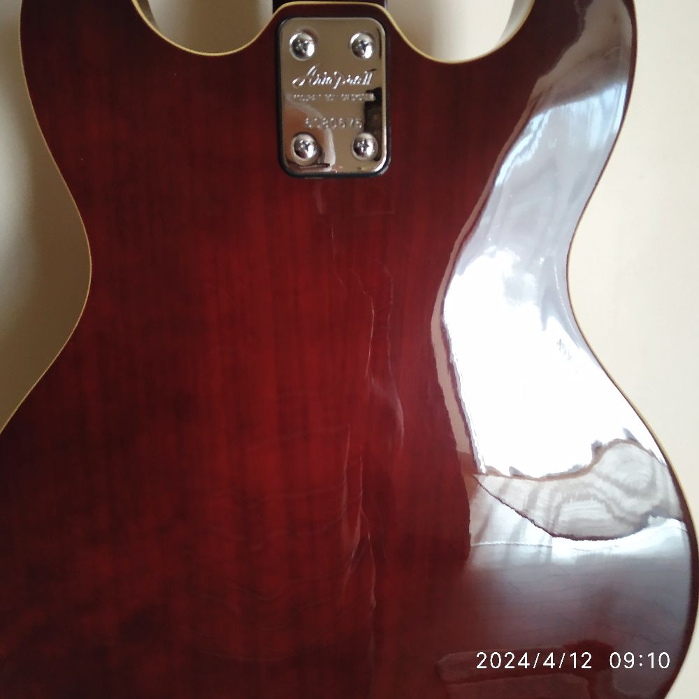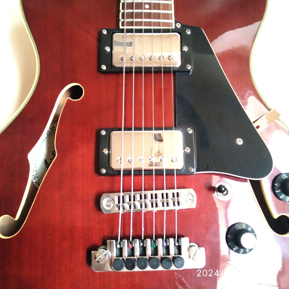 La guitare est totalement full semi-hollow body (sans poutre centrale), sauf sous le chevalet et le cordier où elle a un bloc de bois qui relie le haut et le bas, et qui améliore la tonalité en augmentant le sustain et en diminuant le feedback / larsen.