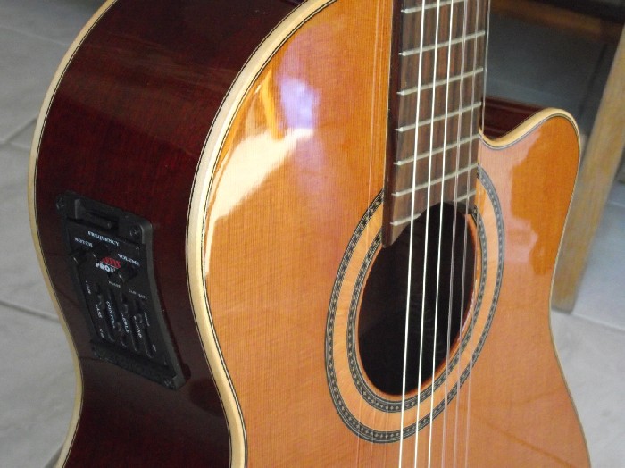 Ces guitares proposent un manche plus fin que les guitares classiques traditionnelles et leur silhouette est proche de celle des guitares folk à cordes acier : cela permet donc au guitariste folk ou électrique désireux d'acquérir une guitare à cordes nylon de trouver facilement ses repères. Excellente sonorité. Pré-ampli qualité professionnelle.