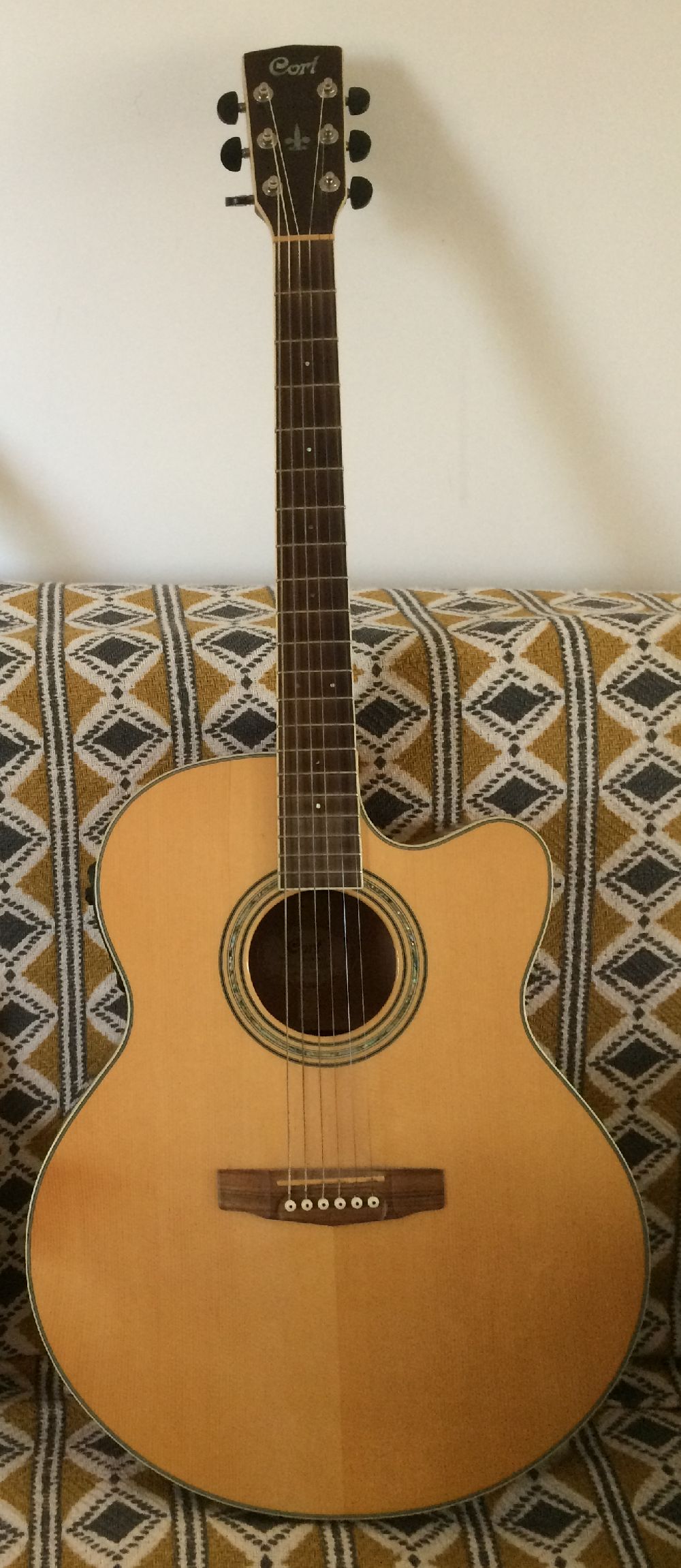 Je vends ma CORT folk électro-acoustique Jumbo. Parfait état. Avec housse de transport rembourrée.
