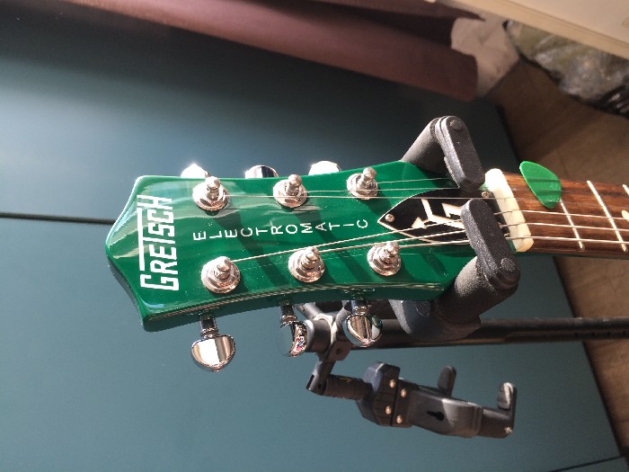 Je vends ma Gretsch G5135GL G.Love Signature Electromatic CVT - Phili-Green with Competition Strip.