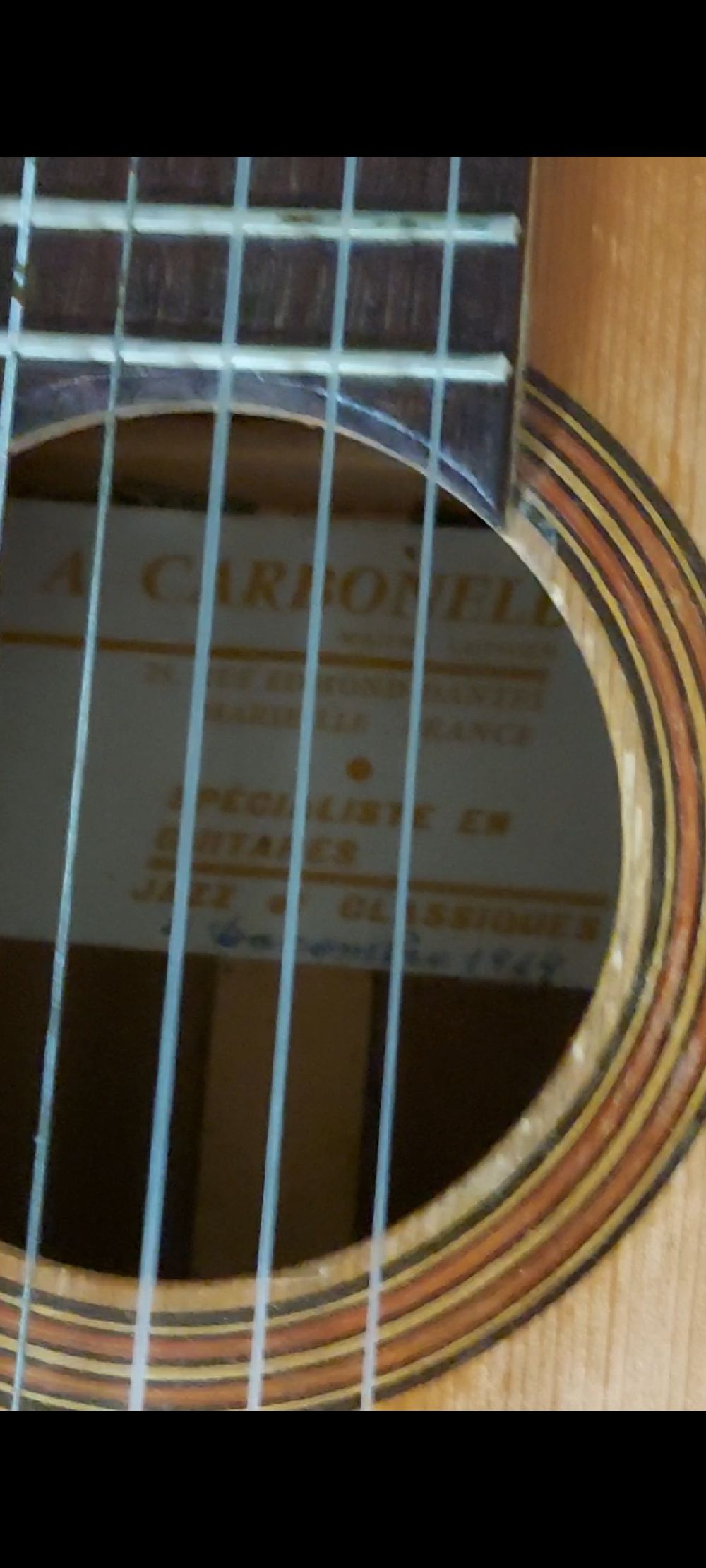 Cette guitare CARBONNEL de 1964 c’est un modèle de forme qu’il disait Nr 8 comme il en a fait 4 par mois pendant de nombreuses années.