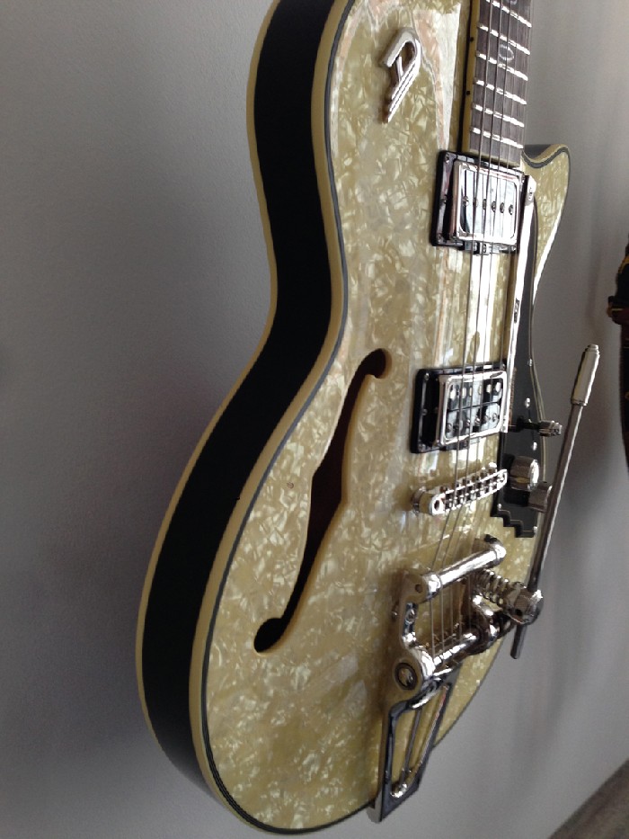Je vends donc cette magnifique Duesenberg Starplayer tv creamy pearl, avec son étui et sa sangle (acheté en mars 2015 et sous garanti jusqu’en mars 2018), réglée par un luthier en février 2016 et dans un état absolument neuf.