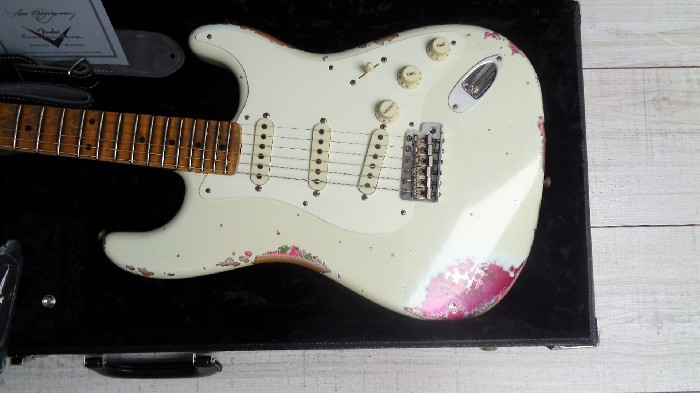 Echange : Fender Custom Shop 57 Stratocaster Heavy Relic, White over Pink Paisley.