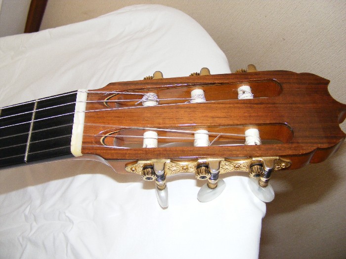 A vendre, guitare de concert de luthier faite par Renaud Galabert. Année 2003. table red cedar, fond et éclisses palissandre indien, manche cèdre, touche ébène. Prix 2500 € avec étui. Excellent état.