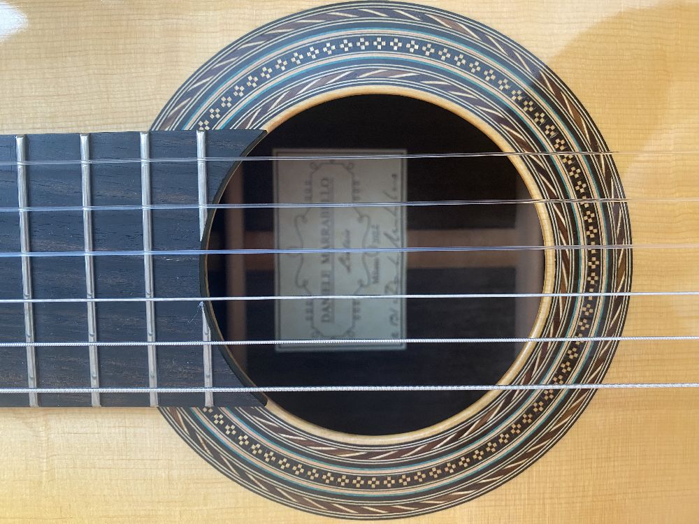 Excellent condition Hauser Model 2022 by the ever reliable and talented luthier Daniele Marabello. Lovely colourful expressive concert guitar. Exceptional mature spruce and Indian rosewood finished with Hauser Alesi Tuner and a beautiful rosette. This particular model of Daniele’s is played by Andrea Dieci and Jan Depreter, a very cool guitar.