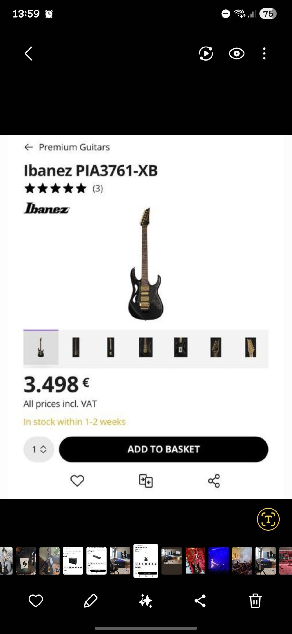 Guitare électrique solid body Ibanez PIA3761-XB à vendre