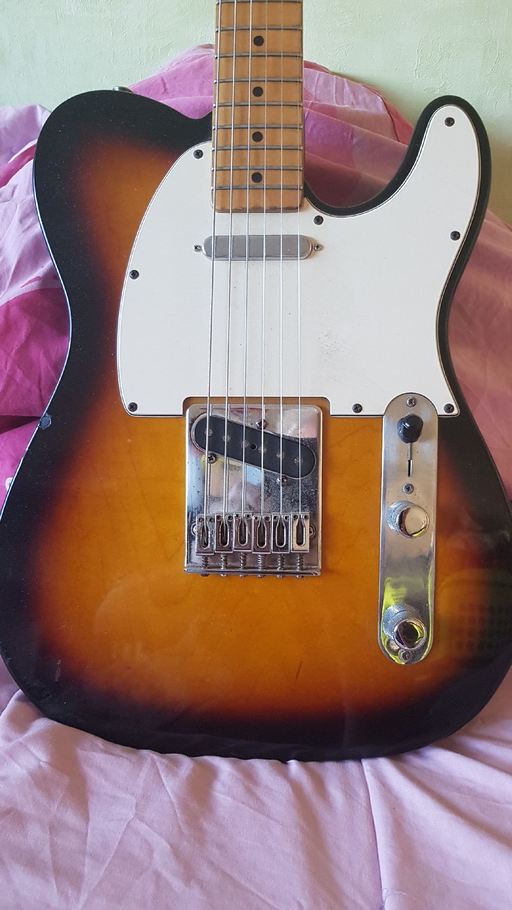 vds télécaster mexicaine de 2000 en super état quelques pocs mais rien de grave guitare montée avec des micro téxas -players un son superbe avec son corps en un seul bloc très rare