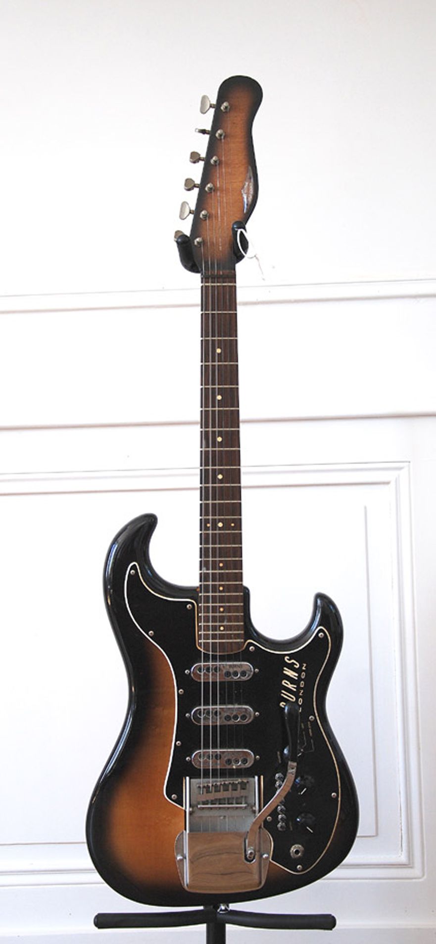 James Burns fonde à Londres sa propre compagnie en 1959. Ses guitares remportent un franc succès en Grande-Bretagne (The Shadows, Cliff Richard) à une époque où leurs concurrentes américaines sont hors de prix. Surnommé le "Leo Fender" londonien, il propose des modèles innovants, comme celui-ci, munis d’un vibrato.