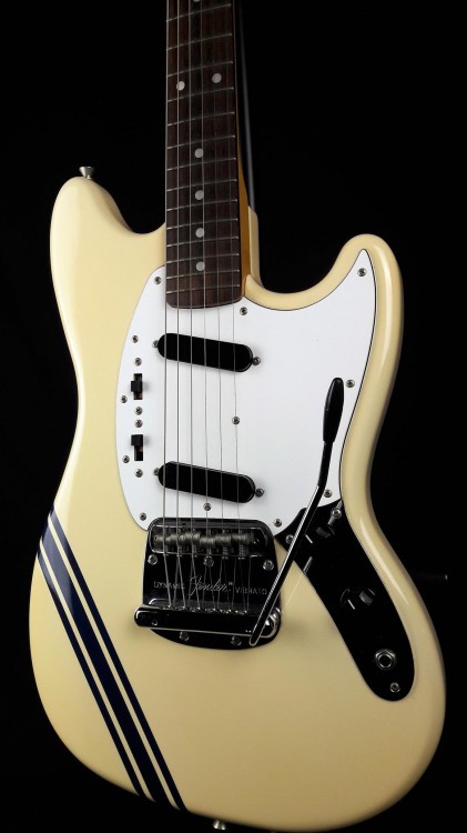 Fender Mustang Japan MG65-86 2006. Série Classique. Réédition 65 ′. Bandes Racing en édition limitée. Blanc. 2006-2008. Numéro de série S095174. Il comprend une gaine en toile. MARQUE: Fender MODÈLE: Mustang Classic Series 65 RÉFÉRENCE: MG65-86 avec bandes Racing NUMÉRO DE SÉRIE: S095174 ANNÉE: 2006-2008 COULEUR: Blanc ORIENTATION: Droite CORDES: 09-42 LAME: 60s CORPS: MAÎTRE Peuplier: Érable DIAPASON: Palissandre VENTILATEUR: Blanc INLAYS: WH dots BRIDGE: Fender Dynamic Vibrato PADS: Single coil x 2 ÉLECTRONIQUE: 1 volume, 1 ton SÉLECTEUR: 2 x 3 positions MATÉRIEL: chrome INCLUS: Housse en toile PAYS D'ORIGINE: Japon Une excellente guitare pour ceux veulent une échelle courte gérable et avec la jouabilité des années 60 du Fender