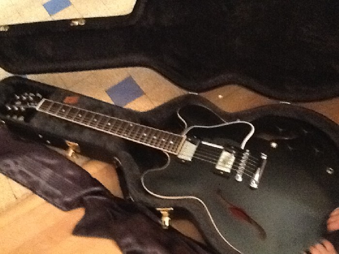 Vends Gibson es 335 noir finition satin.Necessitera un passage chez le luthier pour reglage action.Tres belle guitare achetez vous le reve gibson en version economique.Prix 850 euros.achetée en avril 2012 peu servie.J'ai bien sur le case d'origine,facture a mon nom ect...