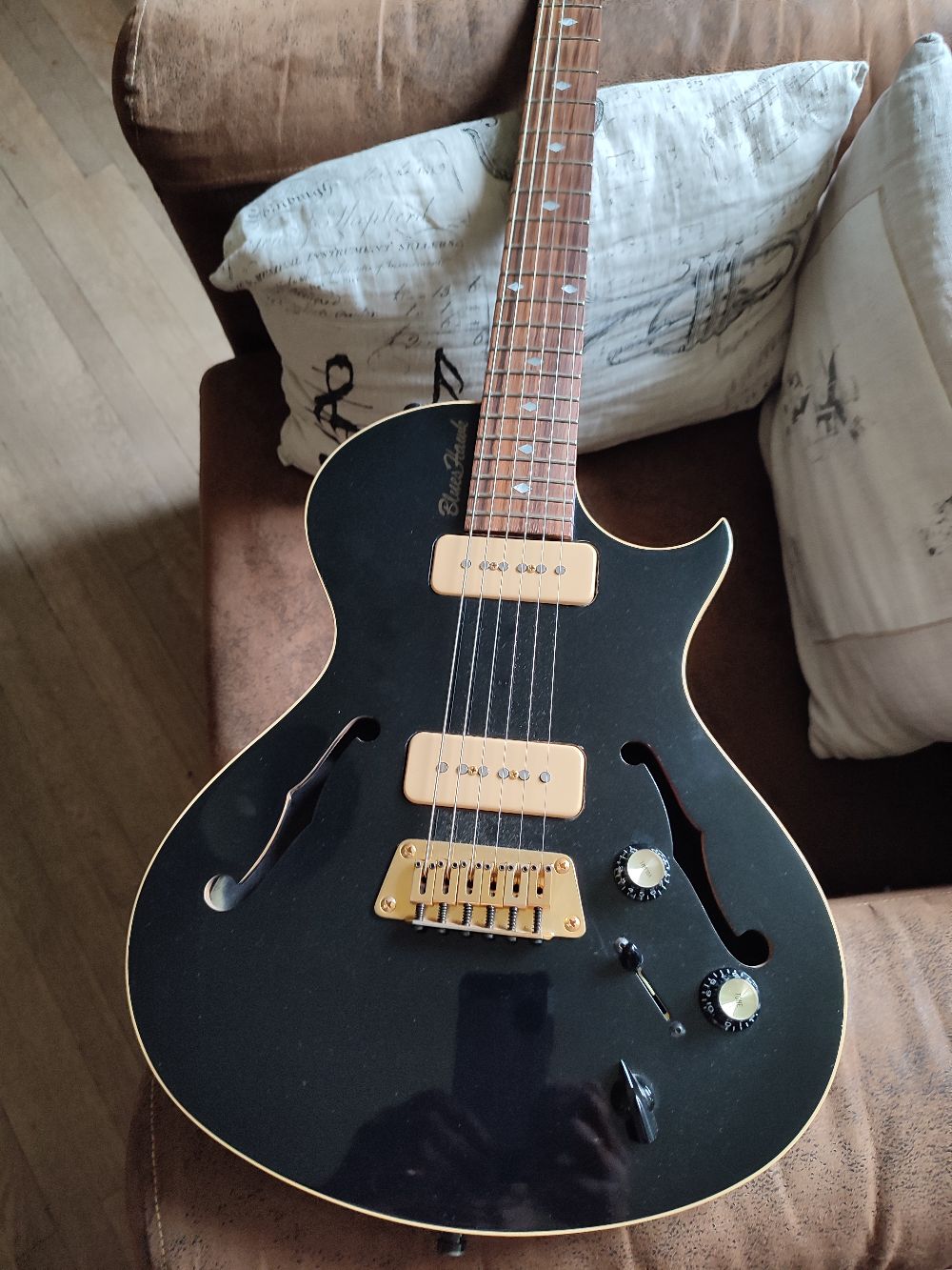 Le corps est creusé avec deux ouies en f du plus bel effet style 335 qui s'ouvrent sur deux petites chambres de résonnance. La finition est parfaite